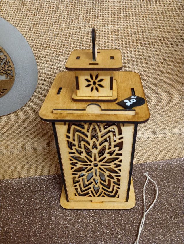 création d'une lanterne tout en bois avec sa bougie à pile , possibilité de choisir de la colorer.