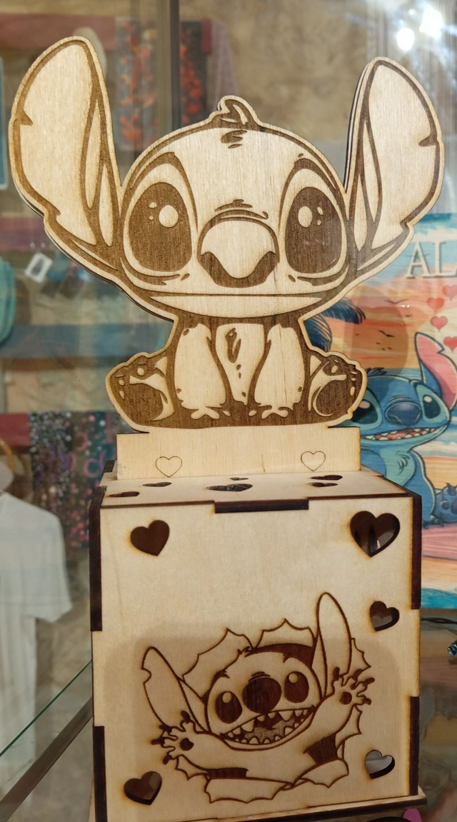 Création en bois avec guirlande lumineuse d'une lanterne sur le thème de Stitch , possibilité de faire tout autre thème .